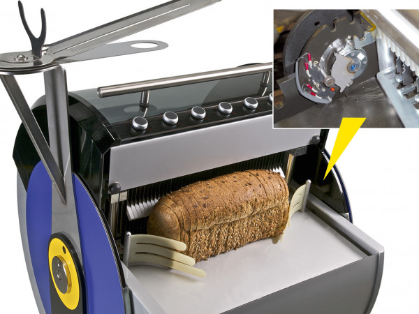 Opening and closing mechanisms for machine protection hoods To exclude the possibility of injury when using bread slicing machines on self-service counters, the automatic bread slicing process does not start...